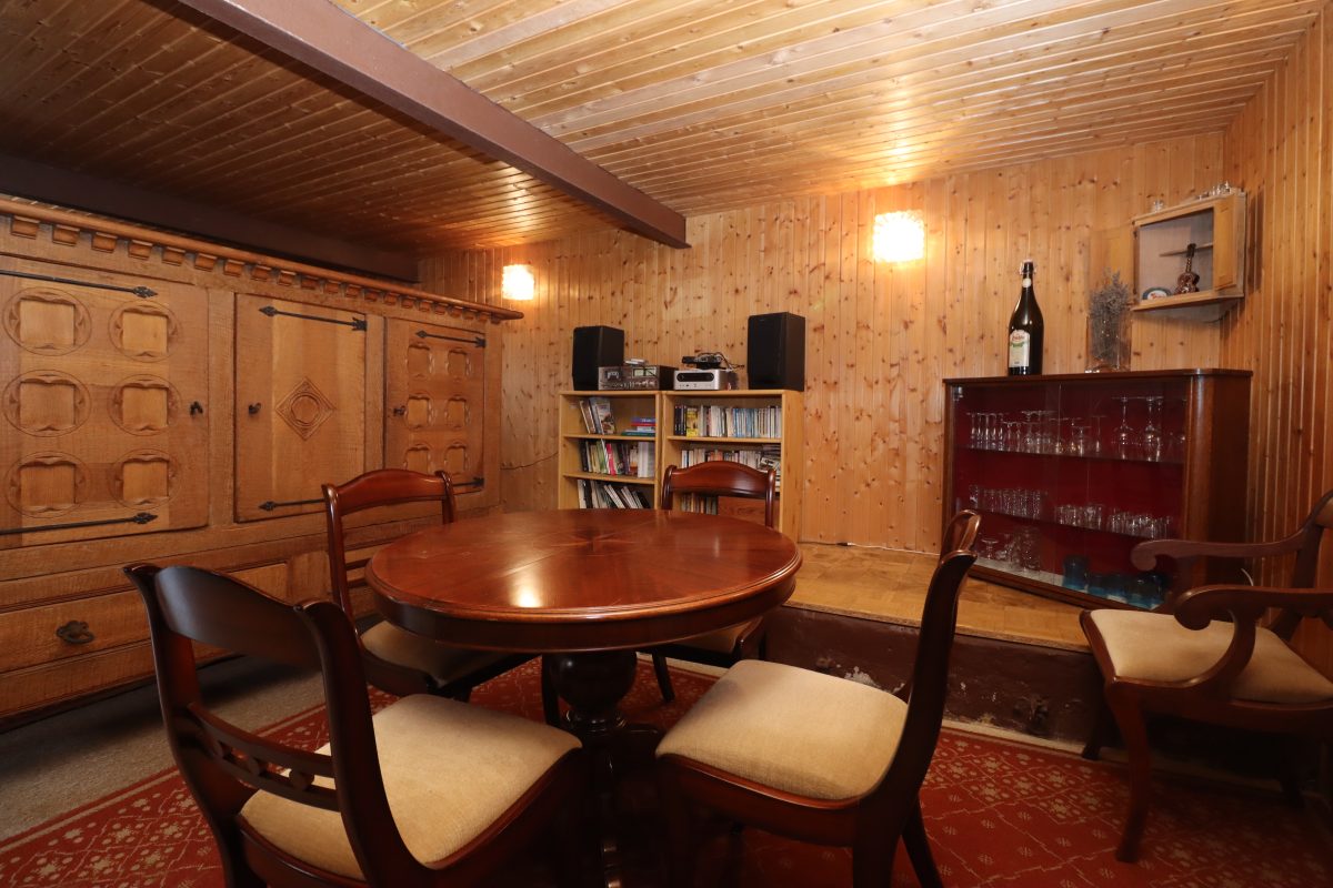 Das Anwesen überrascht durch ein außergewöhnlich großzügiges Raumangebot und ein Volumen, das man hinter der traditionellen Fassade kaum vermuten würde. Im Erdgeschoss verteilen sich mehrere Wohnräume, die vielfältige Nutzungsmöglichkeiten eröffnen. Ergänzt wird diese Ebene durch eine sehr große Garage sowie eine riesige Werkstatt. Beide Bereiche bieten enormes Potenzial und könnten bei Bedarf ebenfalls zu weiterem Wohnraum oder zu einem Atelier, Hobbybereich oder zusätzlichen Gästeräumen ausgebaut werden.