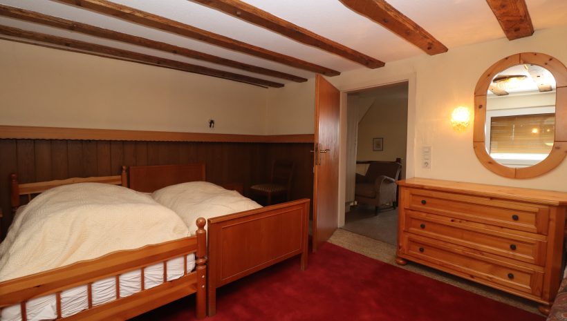Im Obergeschoss befinden sich derzeit drei Schlafzimmer, die ausreichend Platz für Familie oder Gäste bieten. Darüber hinaus steht ein großzügiger Speicher zur Verfügung, der zusätzlichen Stauraum schafft oder perspektivisch ebenfalls ausgebaut werden könnte. Insgesamt eröffnet das Haus durch sein überraschendes Volumen und die vorhandenen Nebenflächen vielfältige Gestaltungsmöglichkeiten.