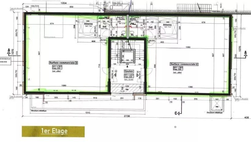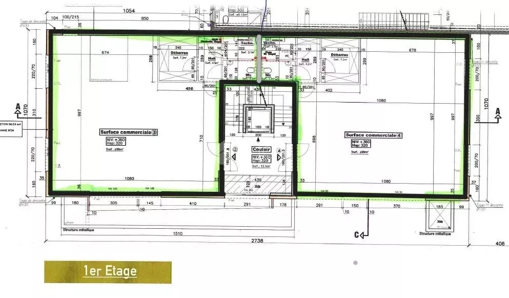 2 Gewerbeflächen im 1. Obergeschoss (jeweils 99 m²)