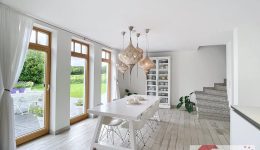 Die Immobilie verteilt sich auf drei Ebenen mit einem intelligent konzipierten Zwischenbau, der den Haupt- und Nebentrakt optisch und funktional voneinander trennt. Auf ca. 193 m² Wohnfläche erleben Sie eine Atmosphäre von Offenheit, Wärme und Stil.