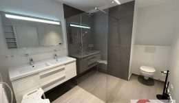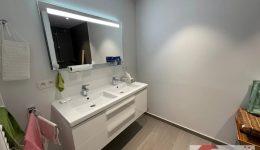 • Une salle de bain attenante, raffinée et contemporaine, équipée d’une douche italienne, d’un double lavabo et d’un WC.