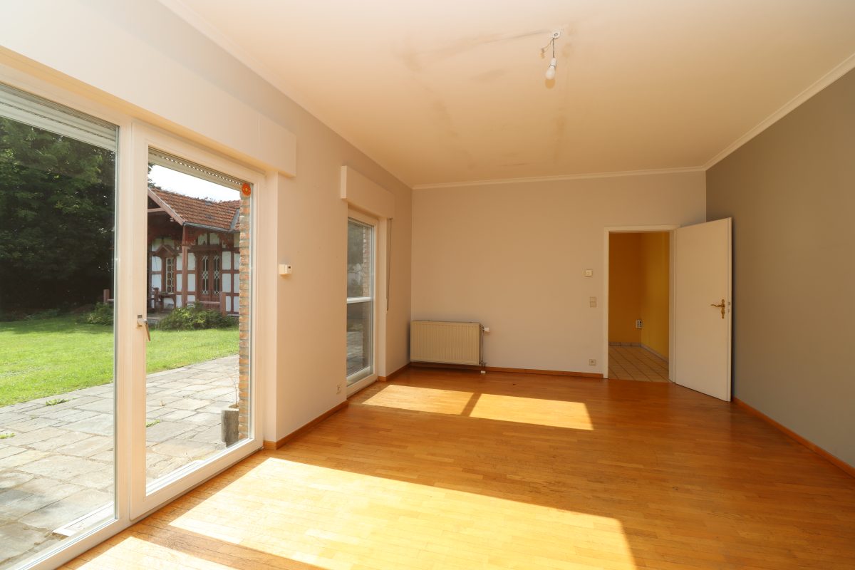 Der Außenbereich besticht durch eine großzügige Terrasse und einen riesigen Garten. Mit einer Gesamtfläche von rund 2.460 m² ist das Grundstück im Stadtzentrum eine absolute Rarität und bietet außergewöhnlich viel Platz. Die großzügige, isolierte Garage mit einer Fläche von ca. 45 m² und hoher Decke bietet Platz für mehrere Fahrzeuge, eine Werkstatt oder Lagerfläche.