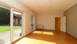 Das geräumige Wohnzimmer mit breiter Fensterfront bietet nicht nur viel Tageslicht, sondern auch direkten Zugang zur großen Terrasse und dem anschließenden Garten, ein idealer Ort für entspannte Stunden im Grünen oder gesellige Abende mit Familie und Freunden. Die angrenzende Küche ist funktional geschnitten und verfügt über einen Zugang zu einem praktischen Abstellraum, von welchem man ebenfalls den Garten erreichen kann. Besonders hervorzuheben ist das Arbeitszimmer, dass sich auch bestens als Gästezimmer eignet. Ein separates WC ergänzt das Raumangebot im Erdgeschoss.