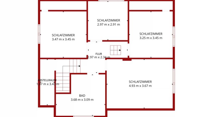 Insgesamt stehen vier gut geschnittene Schlafzimmer zur Verfügung, die flexibel als Schlaf-, Kinder-, Arbeits- oder Gästezimmer genutzt werden können. Die großzügigen Wohnbereiche bieten ein angenehmes Raumgefühl und schaffen eine einladende Atmosphäre für den Alltag wie auch für gesellige Stunden.