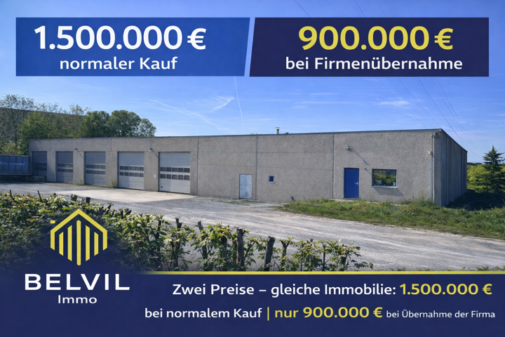 Un bâtiment industriel bien situé avec des bureaux est à vendre dans la zone industrielle d’Eupen, à quelques minutes de l’autoroute. Le bien immobilier offre une surface totale de 1300 m² sur un terrain spacieux d’environ 4800 m². Actuellement, les surfaces de bureaux sont louées et génèrent un revenu locatif mensuel de 1500 €. Ce bien immobilier attrayant peut être acquis par le biais d’une société ou acheté directement. Idéal pour les entreprises qui recherchent un emplacement central avec d’excellentes connexions.