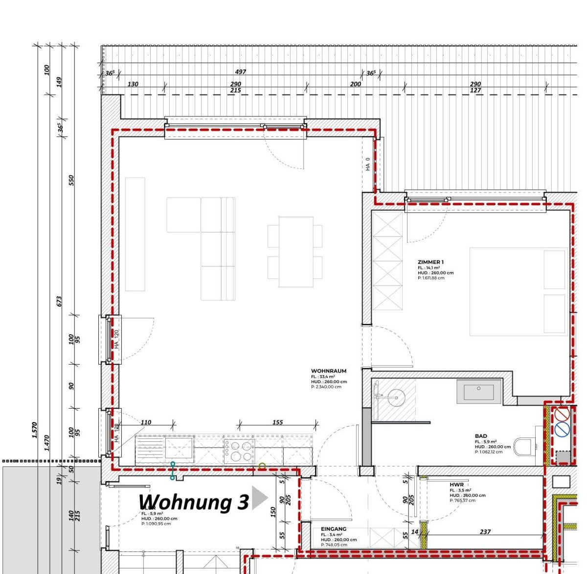1 SZ, WZ, EBK, 1x Bad, Abstellraum, Balkon