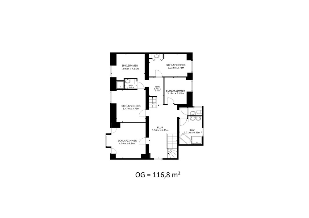 Mit insgesamt 10 Zimmern, darunter 7 geräumige Schlafzimmer und 4 stilvoll gestaltete Badezimmer, bleiben keine Wohnwünsche offen. Die durchdachte Raumaufteilung und die hochwertige Ausstattung mit einer Deckenhöhe von vier Metern schaffen ein behagliches und gleichzeitig repräsentatives Wohnambiente.