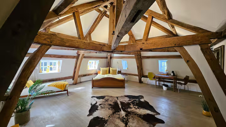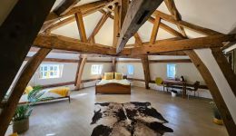 Das Herzstück des Chateaus bildet ein rustikaler Saal, der sowohl als eleganter Festsaal als auch als multifunktionale Veranstaltungsfläche genutzt werden kann.