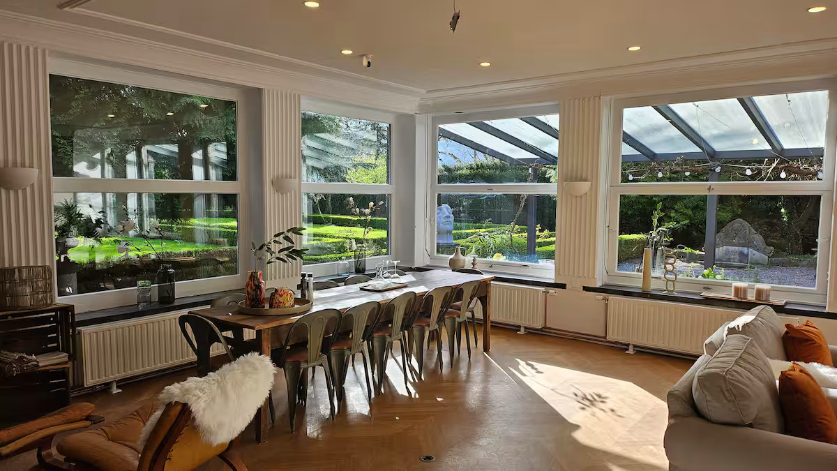 Für das persönliche Wohlbefinden stehen Whirlpool und Sauna bereit, während der weitläufige Garten und der Weiher eine Atmosphäre der tiefen Entspannung bieten. Unterhaltung wird durch einen Billardraum und Kicker geboten, die das Erlebnis für Gäste und Investoren gleichermaßen bereichern.
