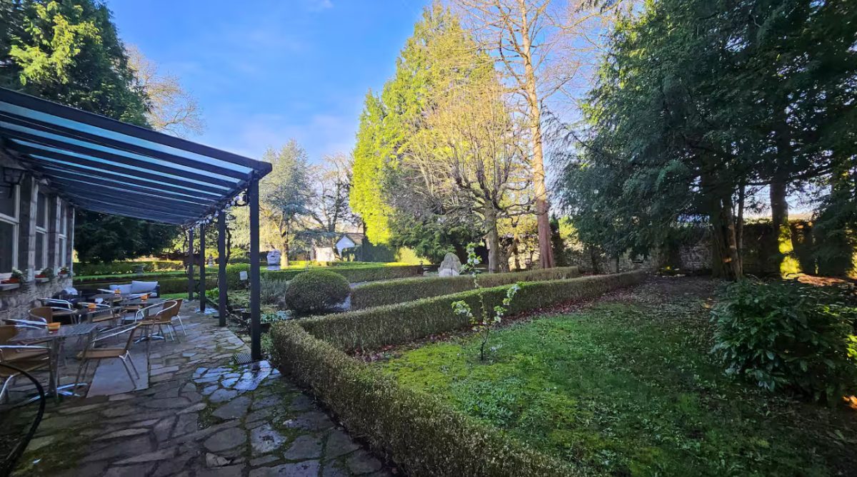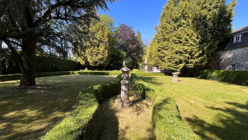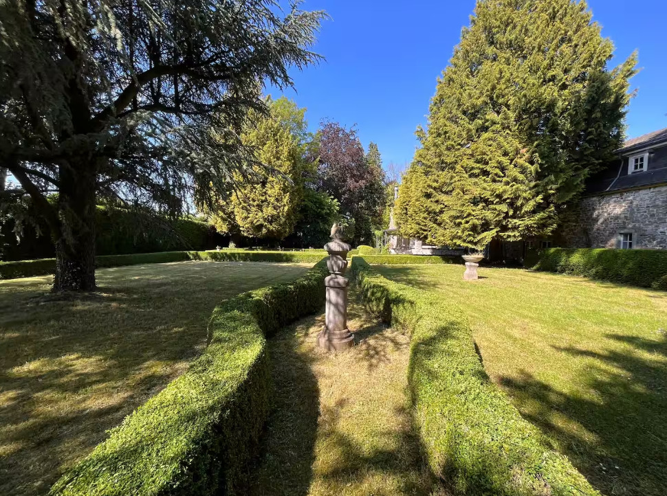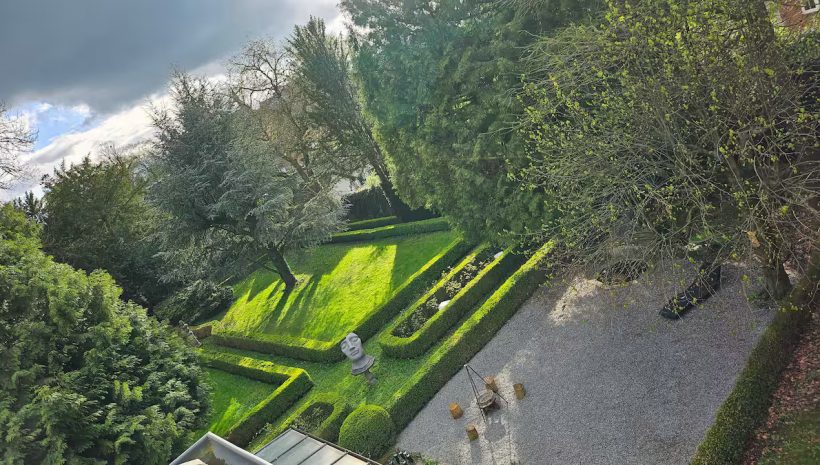 Das Anwesen erstreckt sich über rund einen Hektar Parklandschaft, umgeben von der idyllischen Grenzregion zu Deutschland. Ein malerischer Weiher lädt zum Verweilen ein und unterstreicht die natürliche Schönheit der Umgebung.