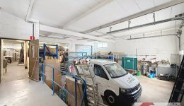 Die ca. 420 m² große, sehr helle Halle ist vollständig gekachelt und verfügt über eine eigene, innenliegende Laderampe, die bequem über ein elektrisches Tor erreichbar ist. Diese Lösung ermöglicht eine reibungslose Anlieferung mit LKW direkt ins Gebäude. Zusätzlich stehen ein gefliestes WC und eine praktische Kitchenette zur Verfügung, die das Arbeiten in der Halle komfortabler gestalten.