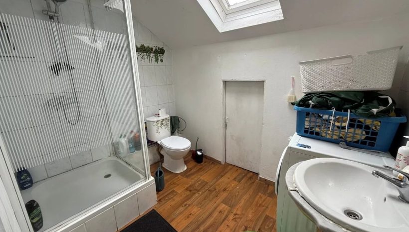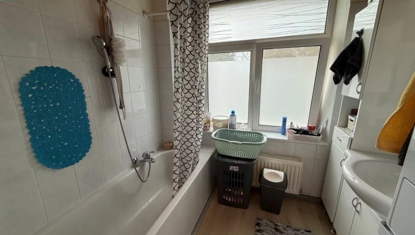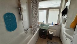 Diese Wohnung bietet Ihnen neben den 3 Schlafzimmern wovon eines einen kleinen Balkon hat, ein mittig situiertes Badezimmer, ausgestattet mit einer Dusch-Wannenkombination, Waschbecken und Fenster zum Lüften.