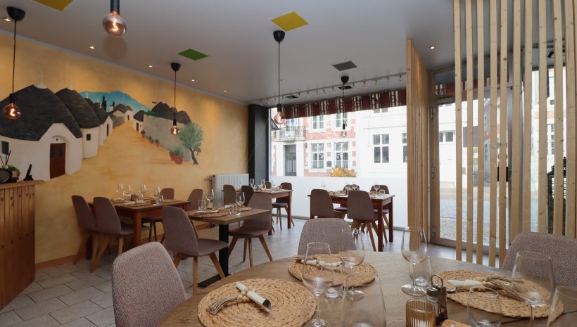 Das zum Verkauf stehende Gebäude befindet sich in zentraler Lage in der Gospertstraße in Eupen und bietet eine vielseitige Kombination aus gastronomischer Gewerbefläche, Außenbereich sowie zwei darüberliegenden Wohneinheiten. Im Erdgeschoss ist aktuell ein italienisches Restaurant zur Miete. Das Mietverhältnis kann vom Käufer übernommen werden. Alternativ besteht die Möglichkeit, nach Anmeldung von Eigenbedarf und unter Einhaltung der gesetzlichen Fristen eine neue Nutzung zu entwickeln. Die gastronomische Einheit umfasst eine Gesamtfläche von rund 150 m², verteilt auf Gastraum, Sanitärbereiche und die zugehörige Küche.
