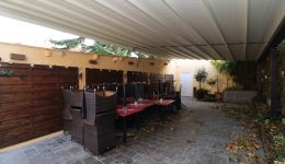 An das Restaurant schließen sich zusätzliche ca. 65 m² Garagen- und Lagerräume an, die vielseitige Nutzungsmöglichkeiten bieten, etwa als Abstellfläche, Erweiterungsoption oder für Lieferlogistik. Besonders attraktiv ist der Innenhof mit etwa 66,5 m², der derzeit als Terrasse für das Restaurant genutzt wird und eine wertvolle Außenfläche im Innenstadtbereich darstellt.