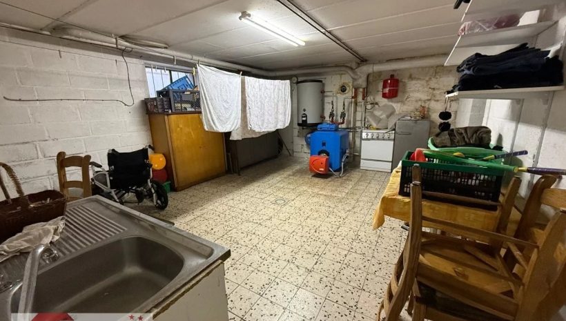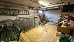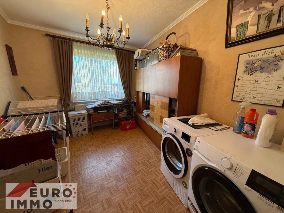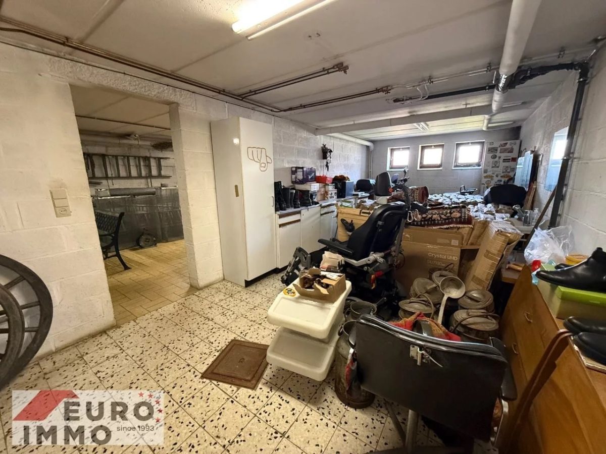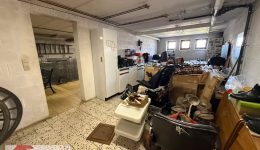 Ein besonderer Vorteil der Immobilie ist das vollständig unterkellerte Geschoss mit einer Nutzfläche von rund 125 m². Dieser Bereich erweitert die Funktionalität des Hauses erheblich und bietet zahlreiche Möglichkeiten zur Nutzung. Alle Räume sind über einen gefliesten Flur erreichbar und übersichtlich angeordnet. Der Heizungsraum umfasst etwa 23 m², während zwei Vorratsräume mit etwa 13 m² und 17 m² reichlich Stauraum bieten. Eine großzügige Waschküche mit etwa 18 m² ergänzt die praktischen Nutzungsmöglichkeiten dieses Bereichs. Darüber hinaus befindet sich im Untergeschoss eine geräumige Garage mit elektrischem Tor und einer Fläche von rund 40 m², die sowohl Platz für 2 Fahrzeuge als auch für zusätzliche Lagermöglichkeiten bietet.