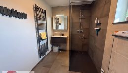 Das Badezimmer stellt den modernsten Raum des Hauses dar und wurde bereits zeitgemäß gestaltet. Es verfügt über moderne Fliesen, eine großzügige italienische Dusche, ein Waschbecken mit Unterschrank, einen Handtuchtrockner sowie ein WC und ein Fenster. Zwischen Wohnbereich und Schlaftrakt befindet sich ein weiterer Raum mit etwa 10 m² Fläche. Dieser Raum bietet vielfältige Nutzungsmöglichkeiten und kann beispielsweise als Büro, zusätzliches Schlafzimmer, Gästezimmer oder Hobbyraum eingerichtet werden.