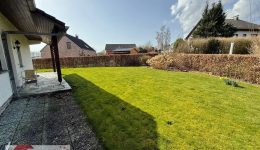 Das Grundstück ist vollständig eingefriedet und von großzügigen Grünflächen umgeben, die sowohl pflegeleicht gestaltet sind als auch viel Raum für individuelle Gestaltungsideen bieten. Für Gartenliebhaber eröffnet sich hier ein wahres Paradies, das vielfältige Möglichkeiten zur Entfaltung bietet – sei es als Ziergarten, Gemüsegarten oder als großzügige Spielfläche für Kinder.