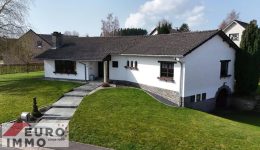 In einer ruhigen und angenehmen Wohnlage von Sankt Vith befindet sich dieser freistehende, vollunterkellerte Winkelbungalow auf einem gepflegten Grundstück von 987 m². Bungalows zählen heute zu den eher selten gewordenen Immobilientypen. Umso attraktiver präsentiert sich dieses Haus, das den besonderen Komfort des Wohnens auf einer Ebene mit einer großzügigen zusätzlichen Nutzfläche im Untergeschoss verbindet. Die Immobilie vereint damit Funktionalität und Wohnqualität in idealer Weise und spricht sowohl Familien als auch Menschen an, die langfristig ein komfortables Zuhause für jede Lebensphase suchen.