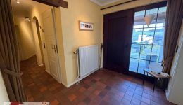 Der Zugang zum Haus erfolgt über einen praktischen Windfang, der insbesondere an regnerischen oder kalten Tagen einen angenehmen Übergangsbereich bildet. Von hier aus gelangt man in den Flurbereich (ca. 9 m²), der mit warmen Terracotta-Fliesen und einem Gäste-WC ausgestattet ist. Von der Diele aus erschließt sich die klare Struktur des Hauses: Der linke Flügel beherbergt den großzügigen Wohnbereich, während sich im rechten Flügel die privaten Schlafräume befinden. Zwischen diesen beiden Bereichen liegt ein zusätzlicher Raum, der flexibel genutzt werden kann.