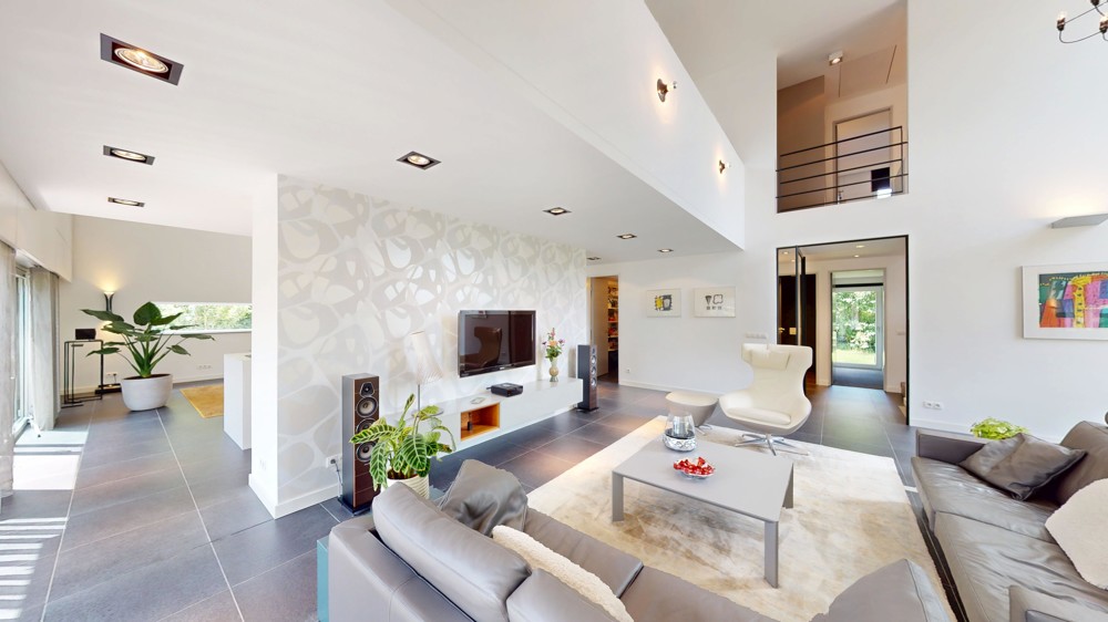 Mit einer Wohnfläche von circa 279 m² und zusätzlichen Nutzflächen von rund 128 m² präsentiert sich das Haus äußerst geräumig und vielseitig. Insgesamt stehen sechs Zimmer zur Verfügung, darunter fünf einladende Schlafzimmer, die Ihnen und Ihrer Familie geruhsame Nächte garantieren. Zwei elegante Badezimmer vervollständigen das exklusive Raumangebot und bieten ausreichend Raum für jeden Morgenbedarf. Ein absolutes Highlight ist die lichtdurchflutete und „schwebende“ Gallergie zentral im Haus.