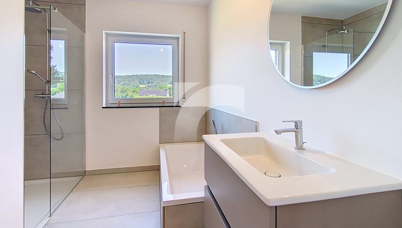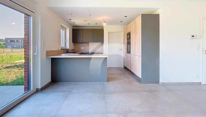Gemmenich – Völkerich, 21: Im Dreiländereck BE/DE/NL, in dem beschaulichen Weiler VÖLKERICH, bieten wir Ihnen familienfreundliches Wohnen. Die neue Parzellierung ist dank Spielstraße und Spielplatz besonders kinderfreundlich. Schulen, Sportinfrastruktur sowie zahlreiche Einkaufsmöglichkeiten sind in wenigen Fahrminuten erreichbar. Die sehr gute Anbindung an öffentliche Verkehrsmittel, die Nähe zu Aachen (D), Vaals (NL) und Maastricht (NL), die schnelle Erreichbarkeit der Autobahnen nach Deutschland und den Niederlanden sind nur einige der vielen Trümpfe dieses Standortes. Genießen Sie vor Ort die Schönheit der Natur und überzeugen Sie sich selbst von der perfekten Lage für Ihr zukünftiges Zuhause. Freuen Sie sich auf Ihres neues 3 Fassadenhaus (Los 18) mit 2 Vollgeschossen in zeitgenössischer Architektur. Diese linke Doppelhaushälfte auf einem Grundstück von ca. 508 m², bietet eine Gesamtfläche von ca. 174 m². Im EG finden Sie Diele, Gäste-WC, Küche, Wohnzimmer, Waschküche, Garage mit Zugang zum Keller. Terrasse und Garten sind vom Wohnzimmer und der Waschküche aus erreichbar. Im OG finden Sie neben 4 geräumigen Schlafzimmern, 1 separates WC, 1 Badezimmer sowie 1 Abstellraum. Teilunterkellerung, PEB A++, Belüftungssystem: D, Wärmeluftpumpe mit FBH, Photovoltaikanlage, 3-fach Verglasung, Rollladen, Hausanschlüsse, Bodenbelag & Innenanstrich, gehören zur Grundausstattung. Die Kaufpreise verstehen sich zuzüglich Kaufnebenkosten. MwSt 6% möglich (unter Bedingungen). Gerne informieren wir Sie über dieses Projekt!
