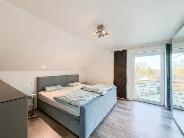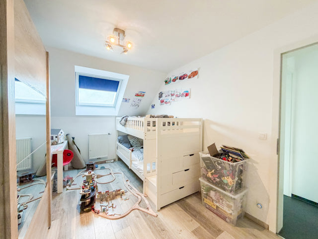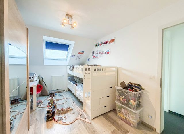 Im Obergeschoss stehen drei schöne Schlafzimmer sowie ein funktionales Badezimmer zur Verfügung. Ein großer Dachboden bietet umfangreichen Stauraum oder weiteres Ausbaupotenzial.