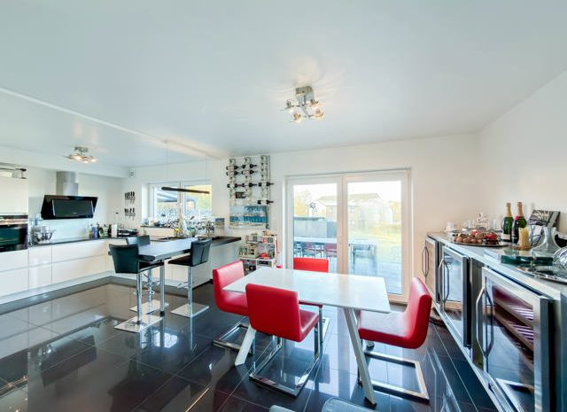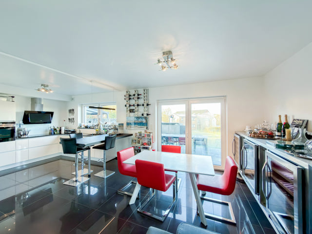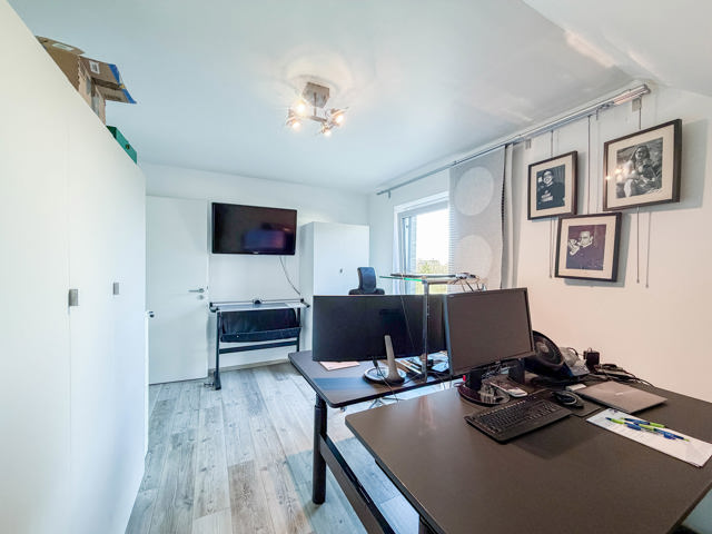 Im Erdgeschoss befinden sich eine helle Eingangshalle, ein separates WC sowie ein großzügiger und gemütlicher Wohnbereich mit komfortablem Wohnzimmer und voll ausgestatteter offener Küche, die funktional und modern gestaltet ist. Eine angrenzende Garage vervollständigt dieses Geschoss. Zusätzlich verfügt die Immobilie im Außenbereich über drei private Stellplätze, die einen hohen Komfort für mehrere Fahrzeuge oder Besucher bieten.