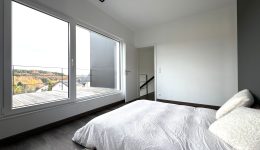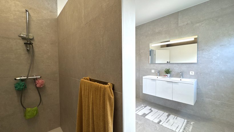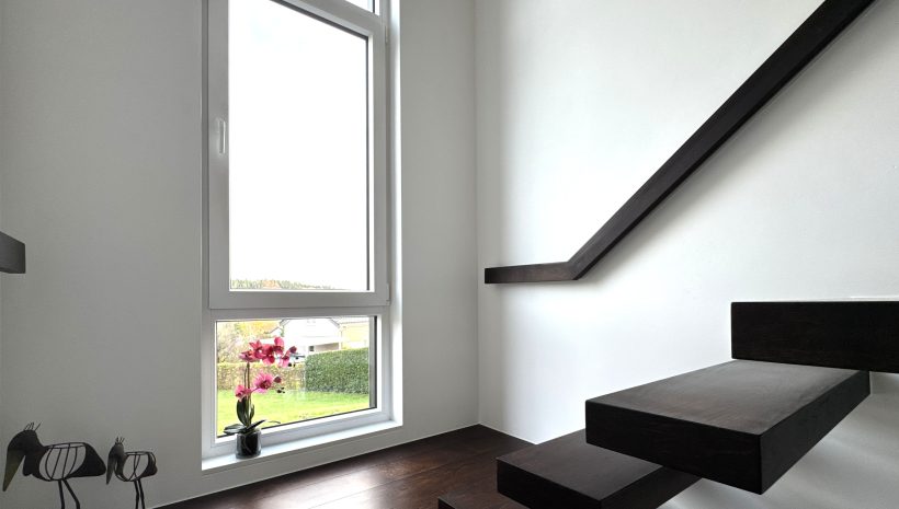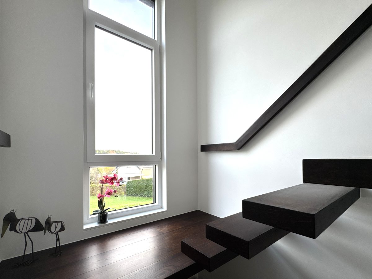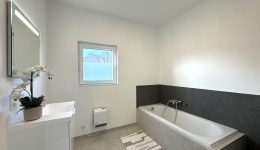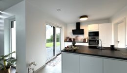 Wärmepumpe, Fußbodenheizung, Lüftungsanlage mit Wärmerückgewinnung, dreifach verglaste PVC-Fenster, Glasfaseranschluss.