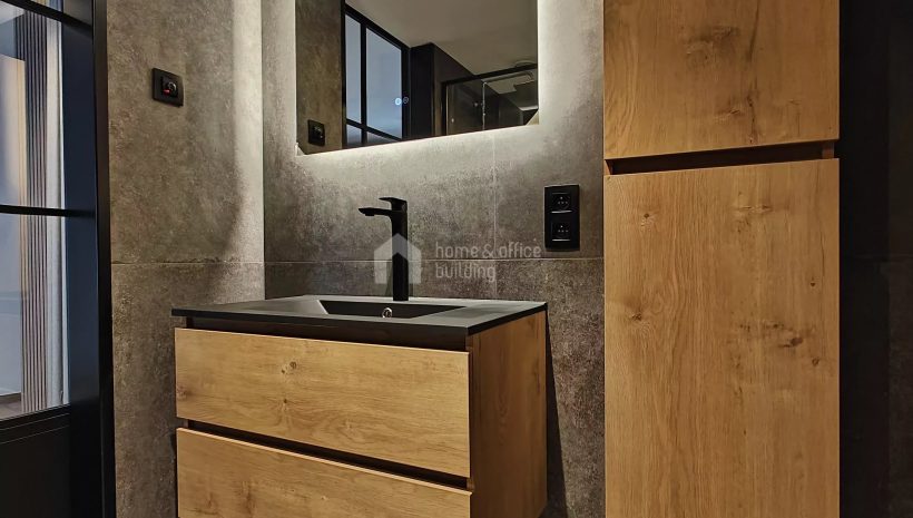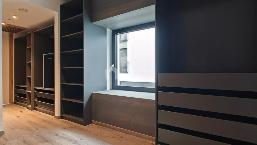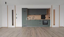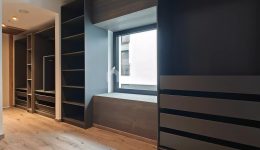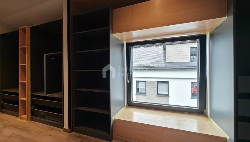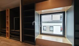Die offene Küche ist mit hochwertigen Geräten ausgestattet und fügt sich harmonisch in den Wohnraum ein – perfekt für stilvolle Abende oder entspannte Alltagsmomente. Maßgefertigte Einbauschränke sorgen für eleganten Stauraum ohne Platzverlust und fügen sich nahtlos in die klare Linienführung der Räume ein.