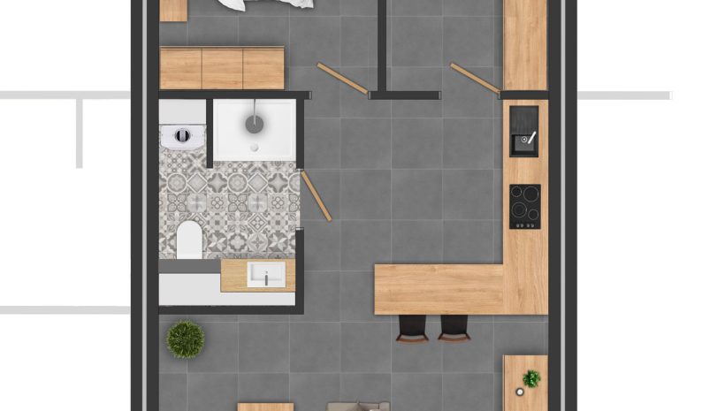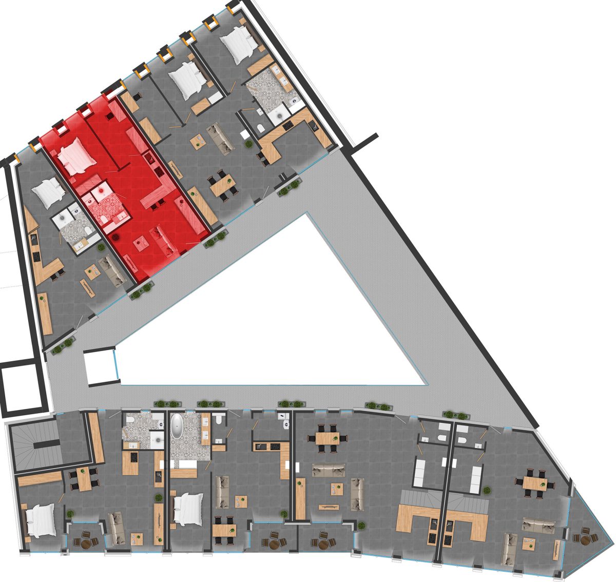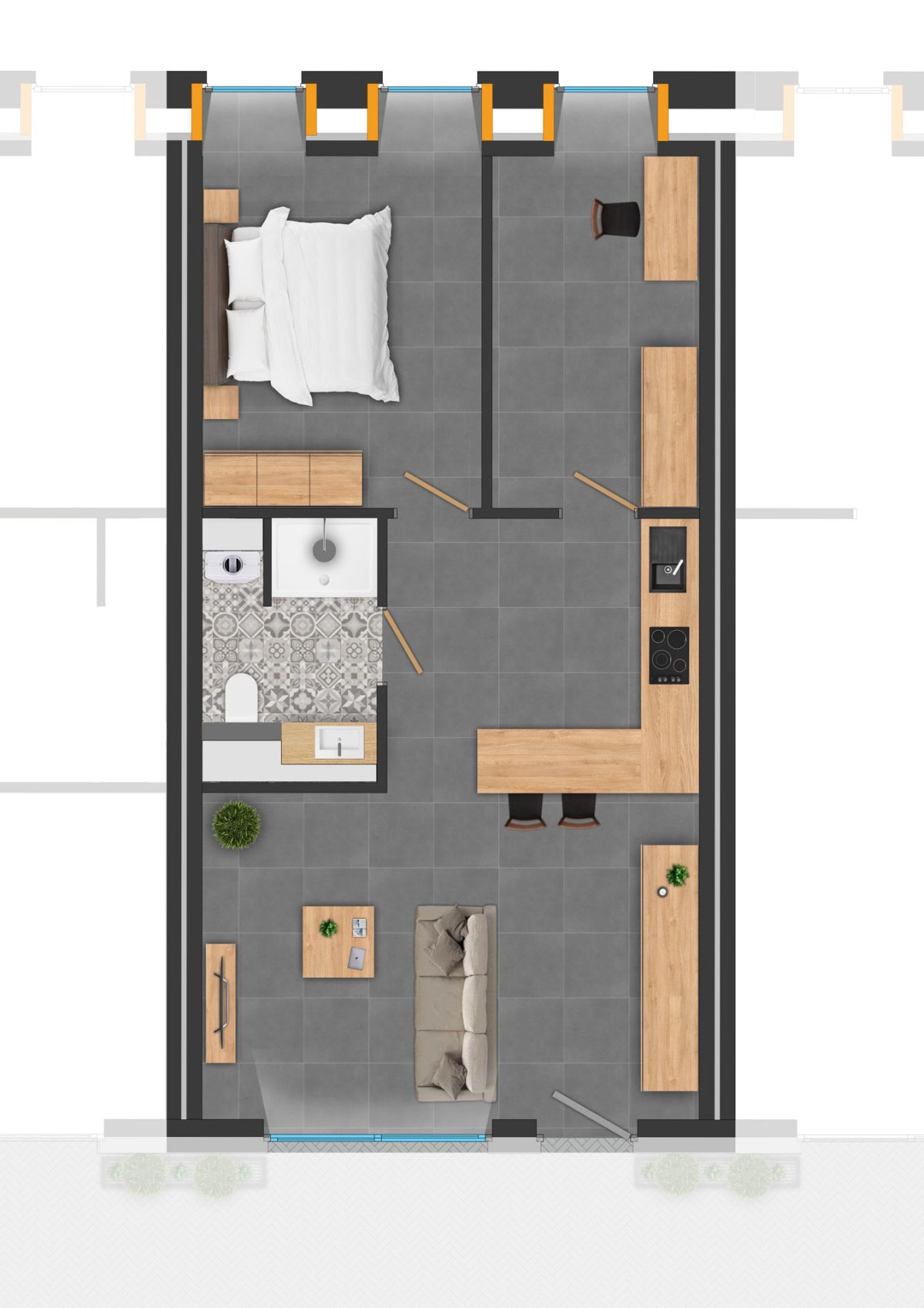 Jede Wohnung verfügt über eine Energieeffizienzklasse A++, was Effizienz und Umweltschutz gewährleistet. Die Ausstattung umfasst elektrische Jalousien, begehbare Duschen, sorgfältig ausgewählte Farben, eine voll ausgestattete Küche und ein komfortables Badezimmer.
