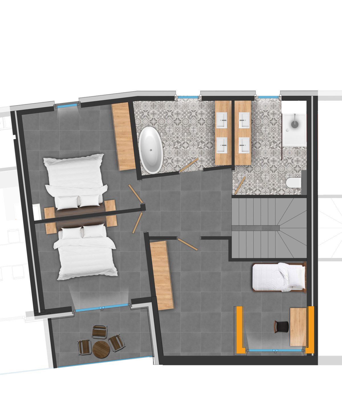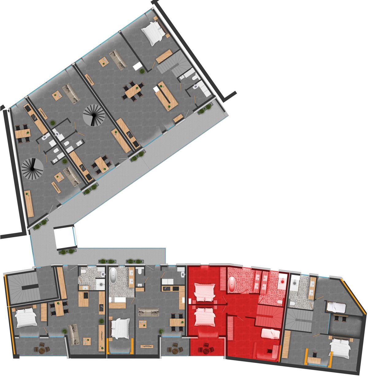 Jede Wohnung verfügt über eine Energieeffizienzklasse A++, was Effizienz und Umweltschutz gewährleistet. Die Ausstattung umfasst elektrische Jalousien, begehbare Duschen, sorgfältig ausgewählte Farben, eine voll ausgestattete Küche und ein komfortables Badezimmer.