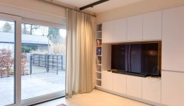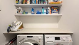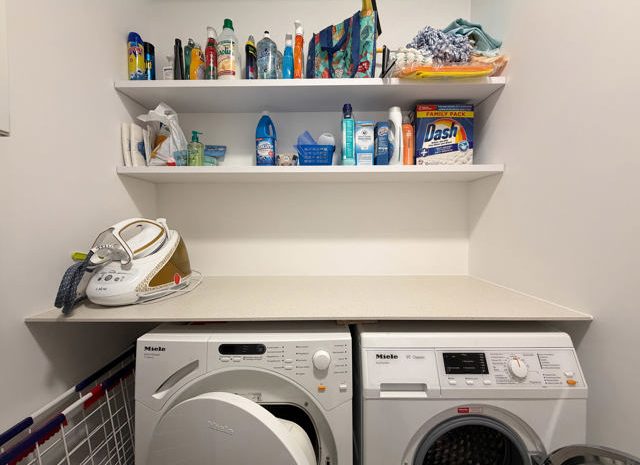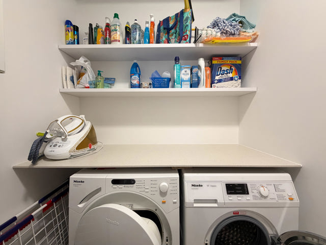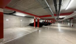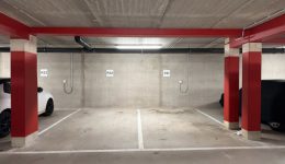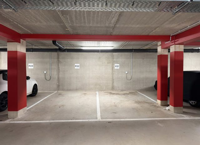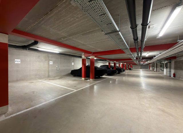 Die Wohnung verfügt über ein komfortables Schlafzimmer, ein hochwertig ausgestattetes Badezimmer sowie einen separaten Hauswirtschaftsraum. Zwei Innenstellplätze sind im Kaufpreis enthalten und stellen einen erheblichen Mehrwert dar. Der Wohnbereich überzeugt durch maßgefertigte Einbaumöbel in Küche, Wohnzimmer und Schlafzimmer, die Bestandteil des Verkaufs sind.