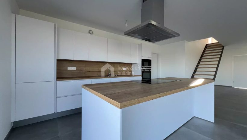 Die hochwertige Ausstattung umfasst eine voll ausgestattete Küche mit stilvoller Kücheninsel, zwei moderne Badezimmer, sowie vier Schlafzimmer, von denen eines mit einem großzügigen Ankleidebereich ausgestattet ist.