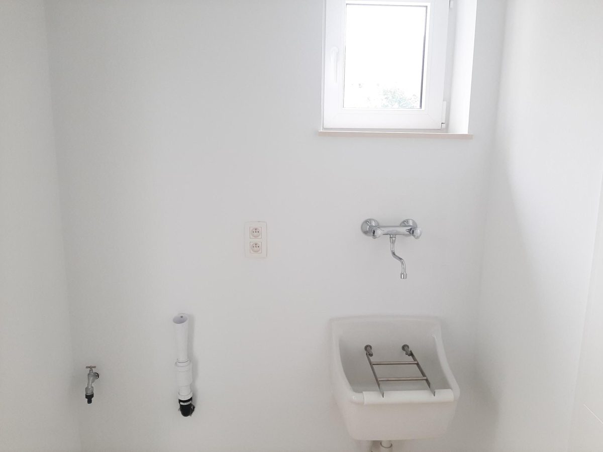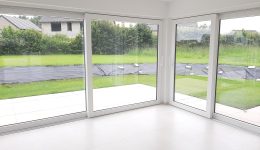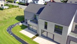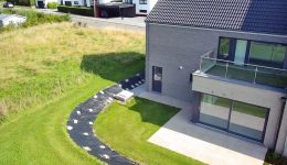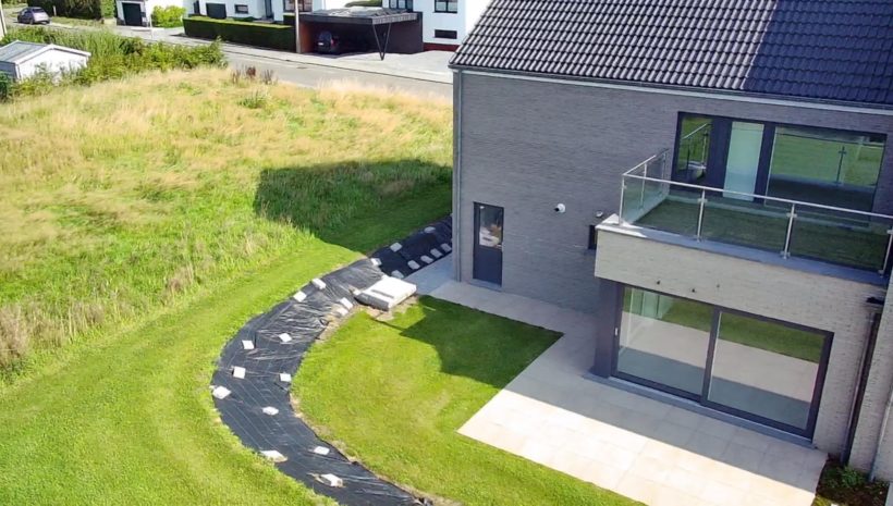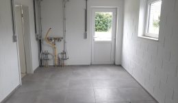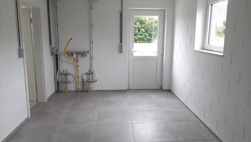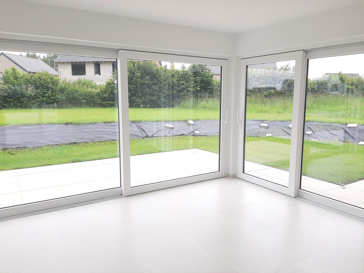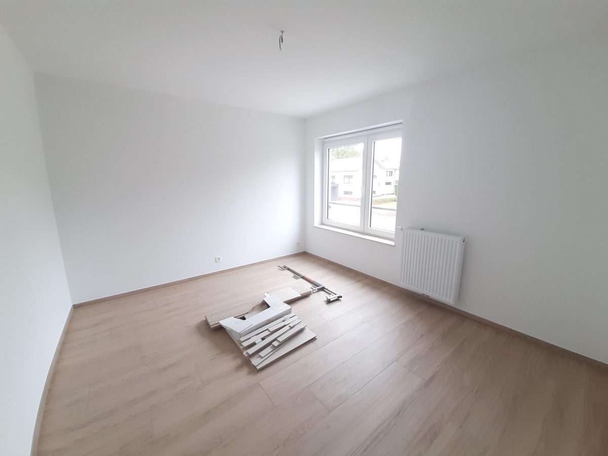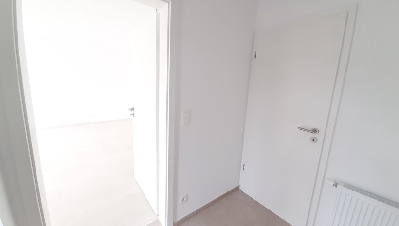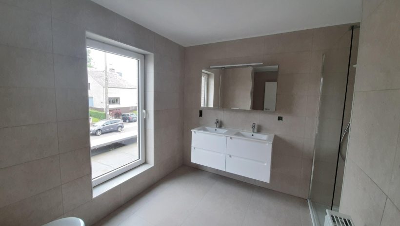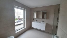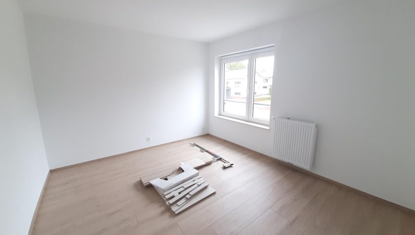 Wunderschönes neues Reihenhaus nach modernsten Standards gebaut. Es handelt sich um einen Neubau auf einem cirka 400 m² grossen Baugrundstück und ausgestattet mit allen modernen technischen Anforderungen, wie zum Beispiel mechanische Lüftung, Regenwasserzisterne von 10 000 Liter, Gaskondensatortherme, Isolation, usw. Alle Böden sind komplett gefliest, das Haus hat ebenfalls eine geflieste Terrasse sowie einen mit Bodenklinkern ausgelegten Weg zum Eingang und zur Garage. Alle Wände sind weiss gestrichen. Kommen wir nun zur Raumaufteilung, auf dem Erdgeschoss befindet die Eingangdiele mit Gäste-WC und dem Zugang zum wunderbar lichtdurchflutenten Wohn-, Esszimmer mit offener Küche, die einen sehr schönen Blick auf die Terrasse bietet durch die Tatsache, daß zwei Seiten, die die hintere Ecke des Hauses bilden, mit bodenebenen Fenstern ausgestattet sind und Sie so die Mittags- und Abendsonne geniessen können. Der Rest dieses sehr grossen Zimmers (etwa 50 m²) erstreckt sich über die gesamte Länge des Hauses, sodaß man von der Terrasse einen direkten Blick auf die Strasse haben kann, sofern man dies möchte. Eine wunderschöne Metalltreppe mit solider Glaswand, ein echter „Eyecatcher“ in diesem Raum, führt Sie auf die erste Etage mit Nachtflur, drei geräumigen Schlafzimmern, die wie schon erwähnt, mit Bodenfliesen, die einen Parkettbelag imitieren, ausgelegt sind. Ein weiteres Highlight ist das moderne Bad mit bodenebener italienischer Dusche, WC und Doppelwaschtisch. Selbstverständlich verfügt dieses Haus ebenfalls über einen nach Süden ausgerichteten Balkon. Ein grosser Speicher eignet sich hervorragend dazu, nicht oft benötigte Utensilien zu lagern. Das Haus verfügt natürlich über eine mit einem elektrischen Sektionaltor geschlossene Garage mit Zugang zum Garten und einen Hauswirtschaftsraum mit Waschmaschinenanschluss. Dieser Raum befindet sich zwischen Küche und Garage, sodaß dort ebenfalls alle nötigen Vorräte zwischengelagert werden können. Sehr schöne Lage am Stadtrand von Welkenraedt und fantastischer Weitblick.