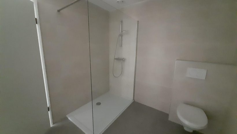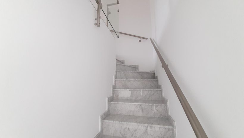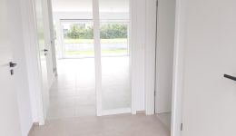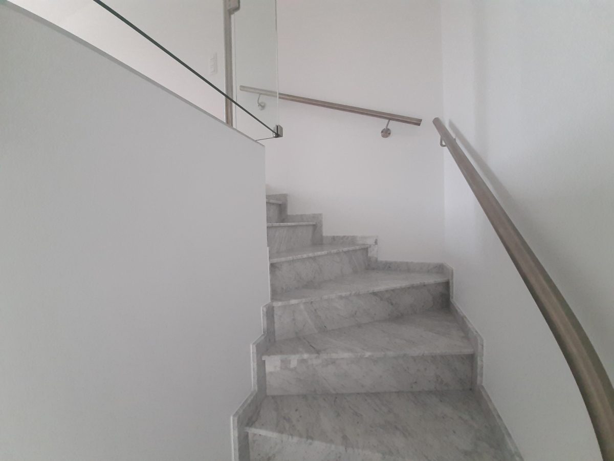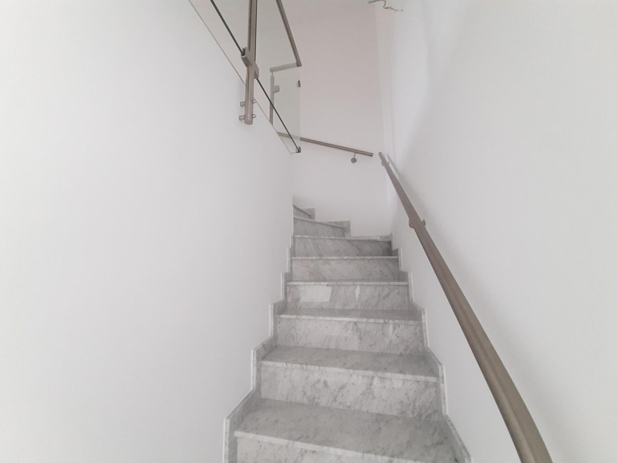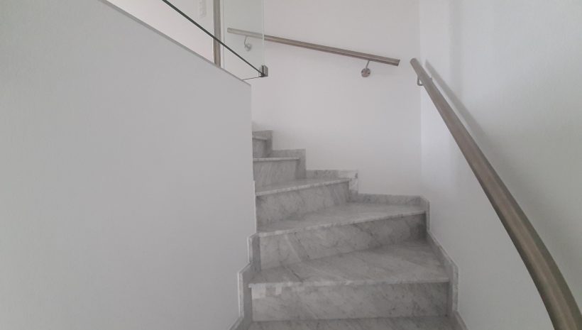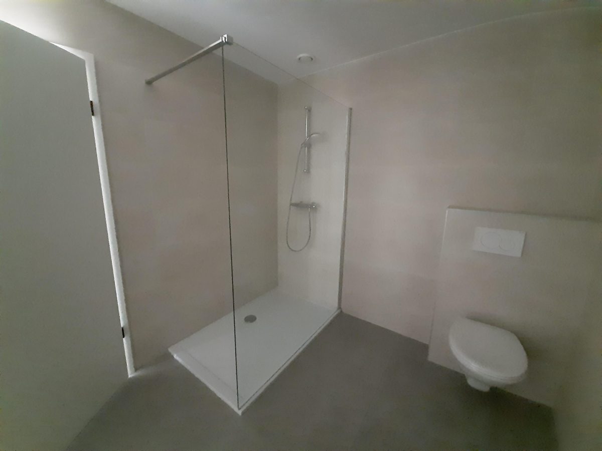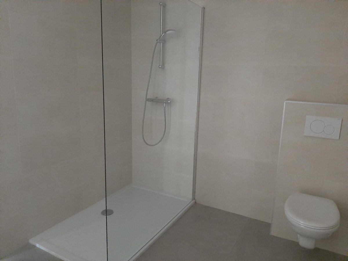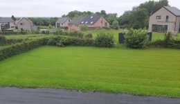 Wunderschönes neues Reihenhaus nach modernsten Standards gebaut. Es handelt sich um einen Neubau auf einem cirka 300 m² grossen Baugrundstück und ausgestattet mit allen modernen technischen Anforderungen, wie zum Beispiel mechanische Lüftung, Regenwasserzisterne von 10 000 Liter, Gaskondensatortherme, Isolation, usw. Alle Böden sind komplett gefliest, das Haus hat ebenfalls eine geflieste Terrasse sowie einen mit Bodenklinkern ausgelegten Weg zum Eingang und zur Garage. Alle Wände sind weiss gestrichen. Kommen wir nun zur Raumaufteilung, auf dem Erdgeschoss befindet die Eingangdiele mit Gäste-WC und dem Zugang zum wunderbar lichtdurchflutenten Wohn-, Esszimmer mit offener Küche, die einen sehr schönen Blick auf die Terrasse bietet. Der Rest dieses sehr grossen Zimmers (etwa 50 m²) erstreckt sich über die gesamte Länge des Hauses, sodaß man von der Terrasse einen direkten Blick auf die Strasse haben kann, sofern man dies möchte. Eine wunderschöne Marmortreppe mit solider Glaswand, führt Sie auf die erste Etage mit Nachtflur mit offenem Arbeits- oder Freizeitraum, drei geräumigen Schlafzimmern wovon ein Zimmer noch über enen Ankleideraum verfügt, die wie schon erwähnt, mit Bodenfliesen, die einen Parkettbelag imitieren, ausgelegt sind. Ein weiteres Highlight ist das moderne Bad mit bodenebener italienischer Dusche, WC und Doppelwaschtisch. Selbstverständlich verfügt dieses Haus ebenfalls über einen nach Süden ausgerichteten Balkon. Ein grosser Speicher eignet sich hervorragend dazu, nicht oft benötigte Utensilien zu lagern. Das Haus verfügt natürlich über eine mit einem elektrischen Sektionaltor geschlossene Garage mit Zugang zum Garten und einen Hauswirtschaftsraum mit Waschmaschinenanschluss. Dieser Raum befindet sich zwischen Küche und Garage, sodaß dort ebenfalls alle nötigen Vorräte zwischengelagert werden können. Sehr schöne Lage am Stadtrand von Welkenraedt und fantastischer Weitblick.