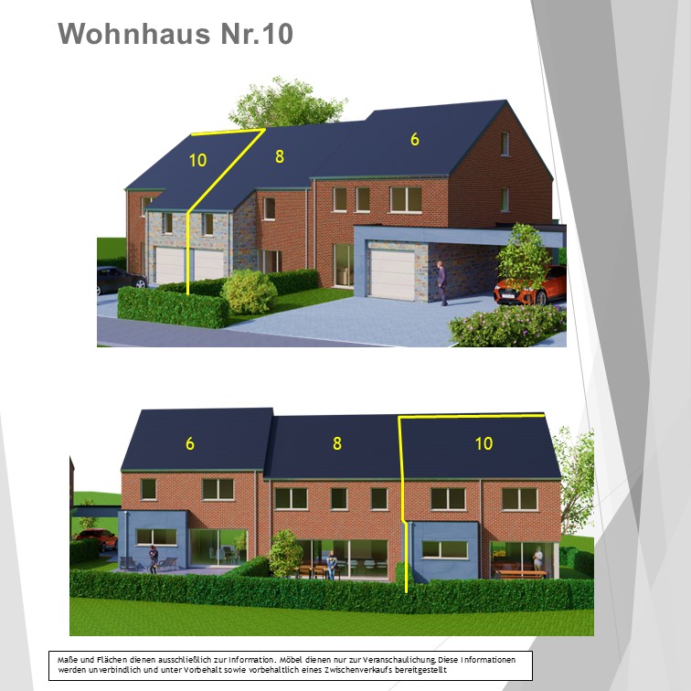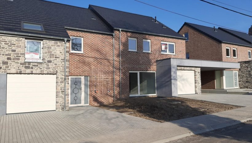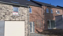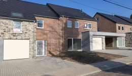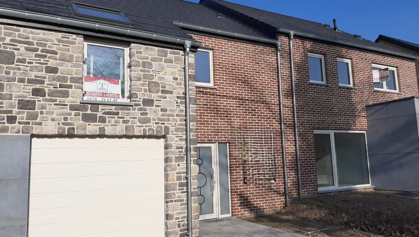 Wunderschönes neues Reihenmittelhaus im Bau nach modernsten Standards. Es handelt sich um einen Neubau auf einem cirka 242 m² grossen Baugrundstück und ausgestattet mit allen modernen technischen Anforderungen. Alle Böden sind komplett gefliest, das Haus hat ebenfalls eine geflieste Terrasse sowie einen mit Bodenklinkern ausgelegten Weg zum Eingang und zur Garage. Alle Wände sind weiss gestrichen. Kommen wir nun zur Raumaufteilung, auf dem Erdgeschoss befindet sich die Eingangsdiele mit Gäste-WC und dem Zugang zum wunderbar lichtdurchflutenten Wohn-, Esszimmer mit offener Küche, die einen sehr schönen Blick und Zugang auf die Terrasse bietet und mit einem direkt daneben liegenden Hauswirtschafts- bzw. Abstellraum. Der große Living hat ebenfalls einen Zugang zur Terrasse. Eine Treppe führt Sie vom Eingangsbereich auf die erste Etage mit Nachtflur und drei geräumigen Schlafzimmern wovon ein Zimmer noch über einen Ankleideraum verfügt, die wie schon erwähnt, mit Bodenfliesen, ausgelegt sind. Ein weiteres Highlight ist das moderne Bad mit bodenebener italienischer Dusche, WC und Doppelwaschtisch. Sehr schöne Lage am Stadtrand von Hergenrath und in unmittelbarer Grenznähe zu Deutschland. Wohnfläche (mit Garage) cirka. 154 m², fantastischer Weitblick, Garage, Gaszentralheizung. Nicht inbegriffen sind Anschlusskosten, MwSt.,Notar- und Aktkosten.