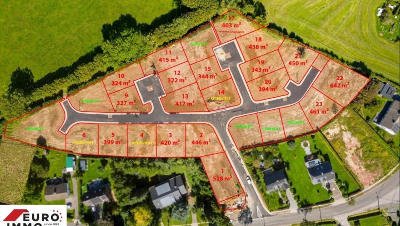 Mit Los 22 sichern Sie sich eines der großzügigsten Grundstücke der Parzellierung „NEUWEIDE“,: 642 m² Fläche, die Raum für all Ihre Wohnträume bietet. Hier ist Platz für Ihre Ideen: Gestalten Sie Ihr Zuhause nach Ihren Vorstellungen mit Haus und Garten.