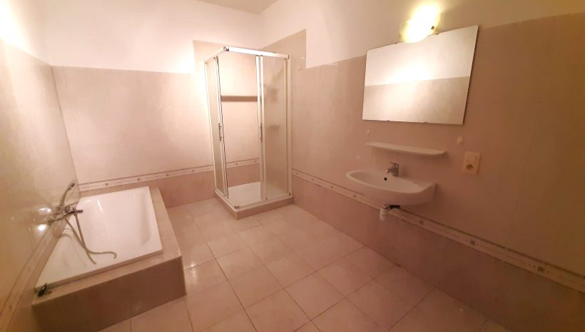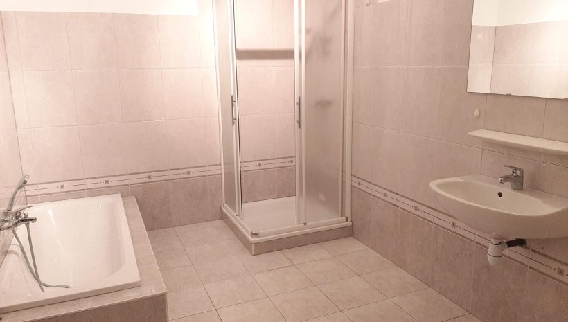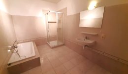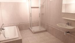 Des Weiteren gibt es ein grosses Bad mit Dusche, Wanne und Waschtisch sowie ein separates WC.