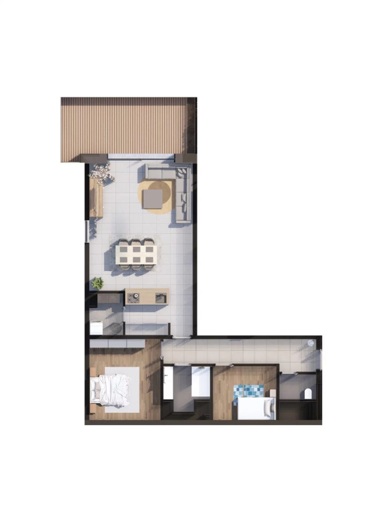 Flur 9,80 m² – Wohnzimmer 34,70 m² – Küche 4,20 m² – HWR 3,50 m² – Schlafzimmer 8,40 m²- Schlafzimmer 02:14,10 m² – Badezimmer 4,40 m²- WC 2,30 m²