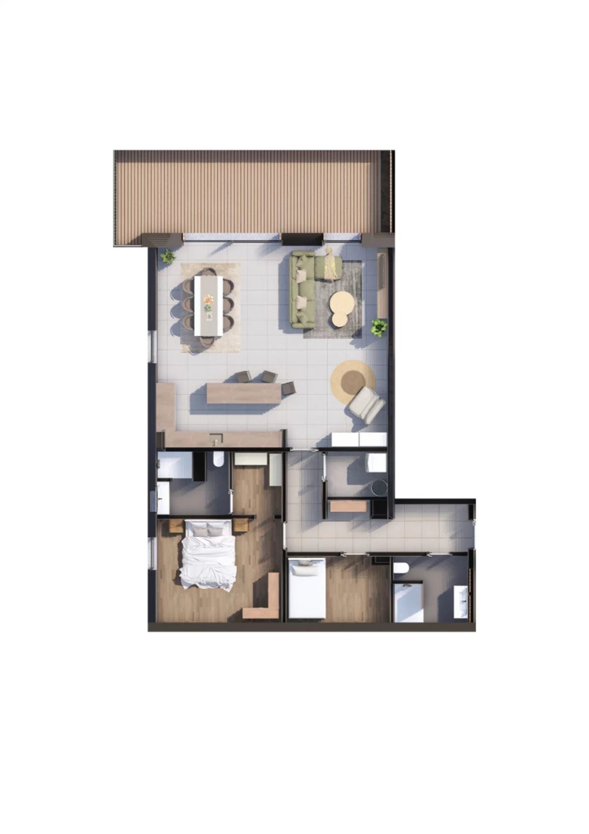 Flur 11,60 m² – Wohnzimmer 41,70 m² – Küche10,30 m² – HWR 3,30 m² – Schlafzimmer 01 : 18,60 m²- Zimmer 02: 7,70 m² -Badezimmer 01: 4,80 m²- Badezimmer 02: 5,70 m²