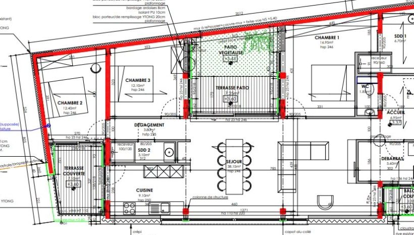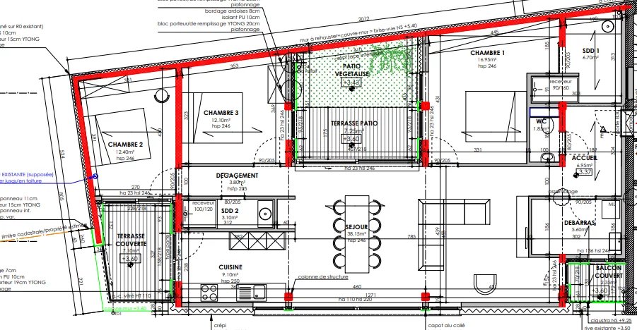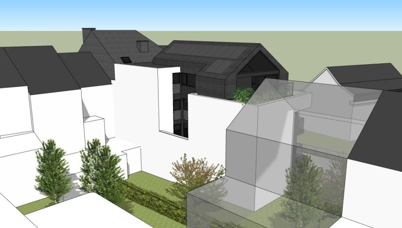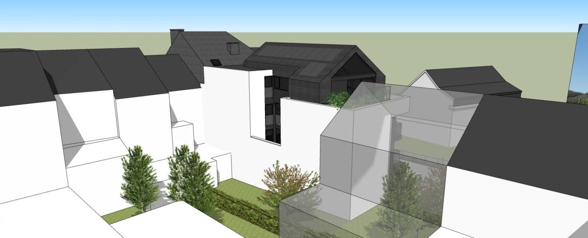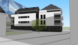 Das Gebäude besteht aus drei Einheiten und wird im Rahmen einer Aufstockung realisiert. Die Gemeinschaftsbereiche, ausgestattet mit einem Aufzug, werden mit dem bestehenden Teil des Gebäudes geteilt.