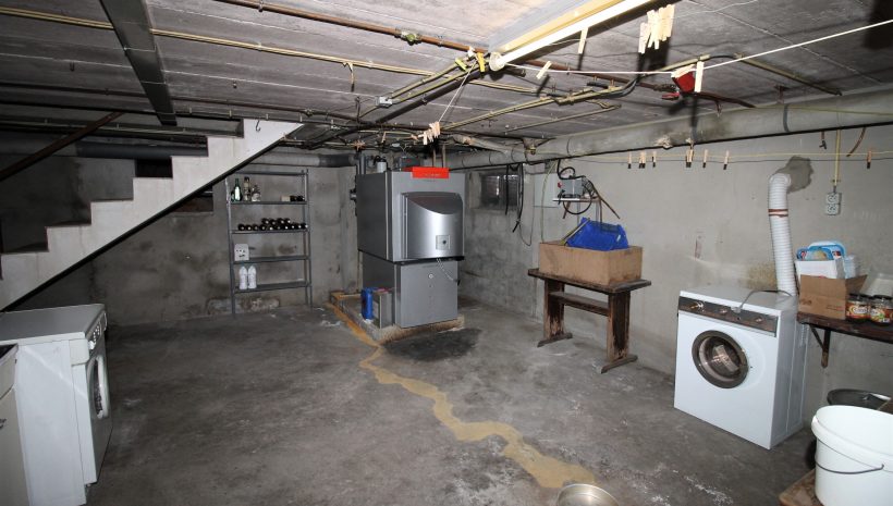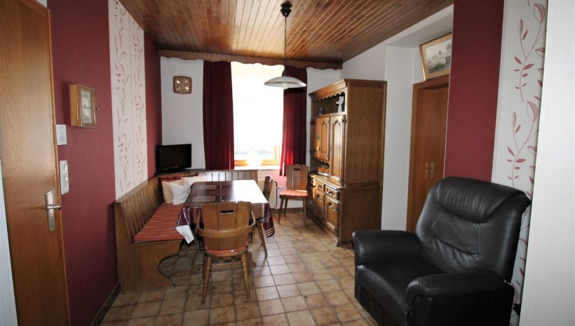 Der Wohnbereich setzt sich wie folgt zusammen: eine Diele, eine Einbauküche mit Esszimmer, ein großes Wohnzimmer, ein Abstellraum, 5 Schlafzimmer, davon eins mit Balkon, 1 Badezimmer mit Badewanne, Waschbecken und WC, Speicher/Abstellplatz, welcher weitere Wohnfläche ermöglicht und ein Keller mit Kühlraum, Ölzentralheizung, Abstellraum und eine Garage.