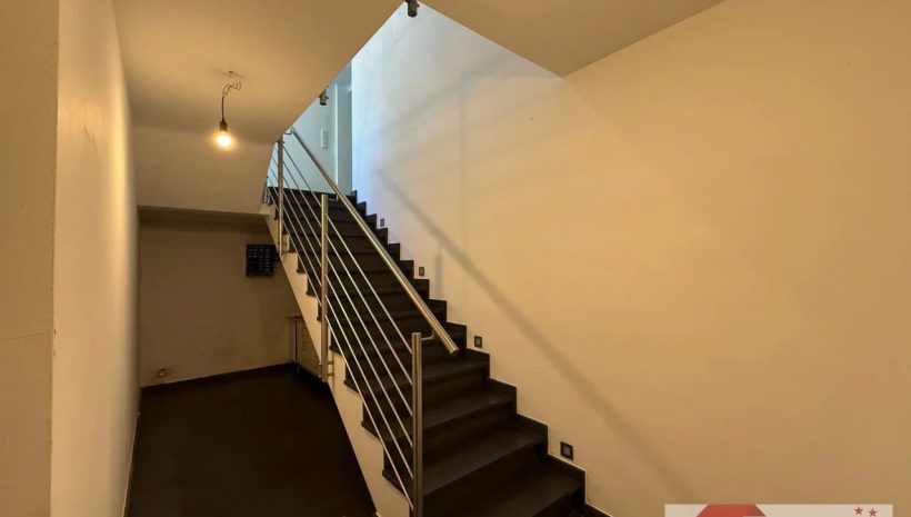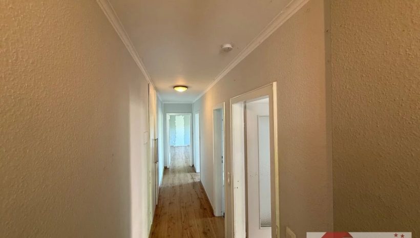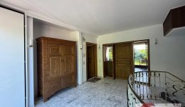 Die Steintreppe führt weiter ins lichtdurchflutete Garten-Erdgeschoss, das den Hauptwohnbereich beherbergt. Ein zentraler Flur (ca. 10 m²) öffnet sich über eine große Glastür zu einem Balkon (ca. 6 m²) mit Blick auf den Vorhof – ein sonnendurchfluteter Platz, der bereits morgens das Haus mit Helligkeit erfüllt.