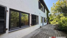 Mit einer Wohnfläche von rund 250 m² öffnet sich dieses zuerst errichtete Gebäude wie ein ruhiger Rückzugsort, der viel Raum zur freien Entfaltung lässt. Zwei klar getrennte Ebenen gliedern das Haus auf angenehme Weise: eine Nutzebene im straßenseitigen Eingangsgeschoss und eine Wohnebene im gartenseitigen Erdgeschoss, die sich zur grünen Umgebung hin öffnet – ganz im Einklang mit der Natur.