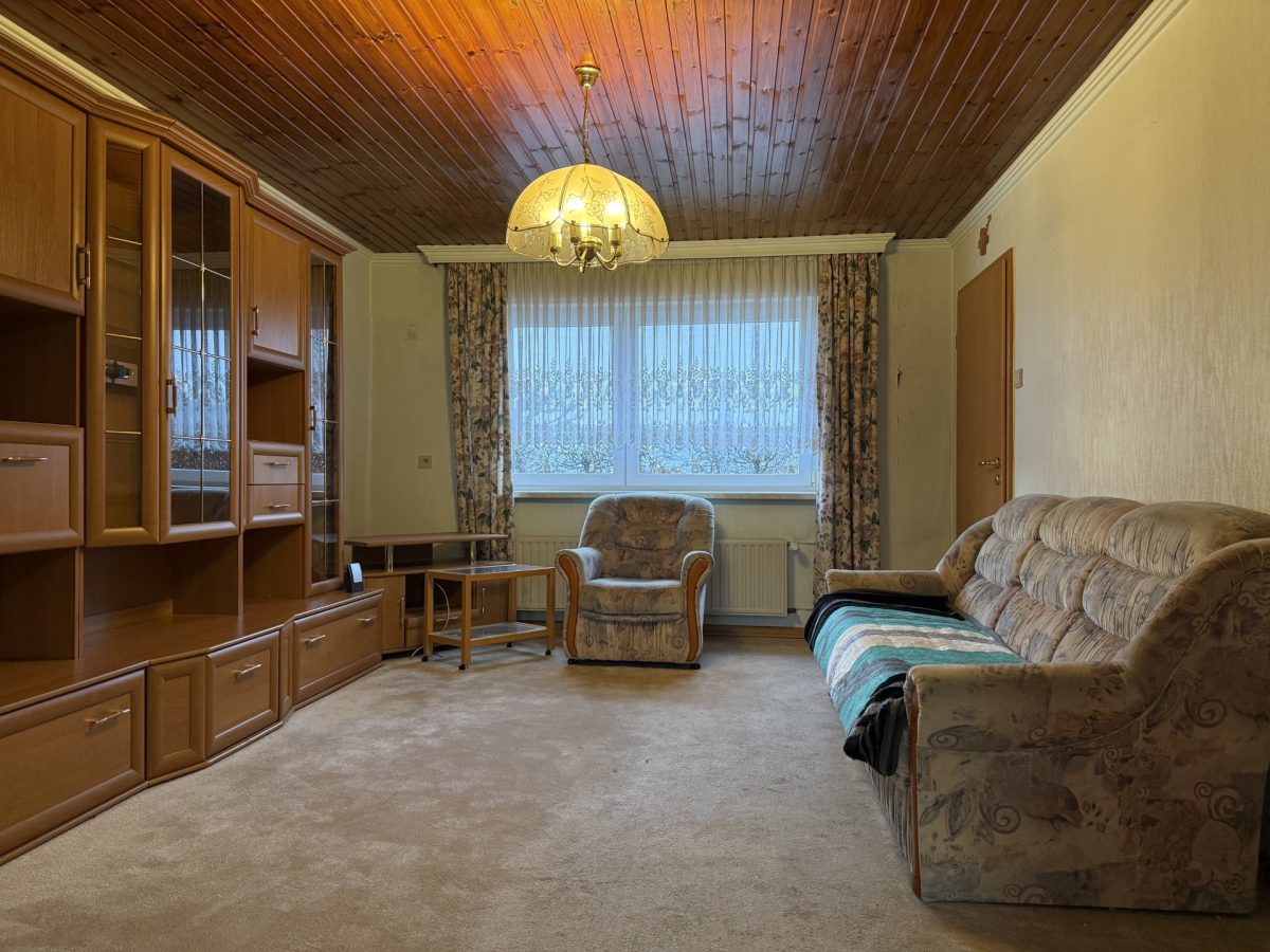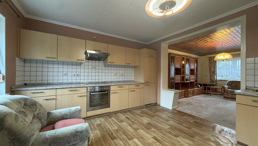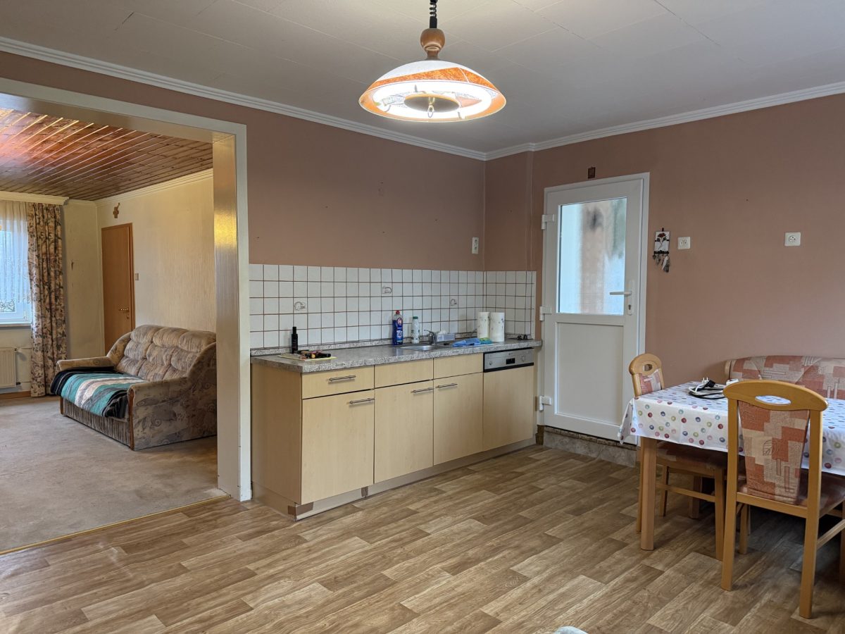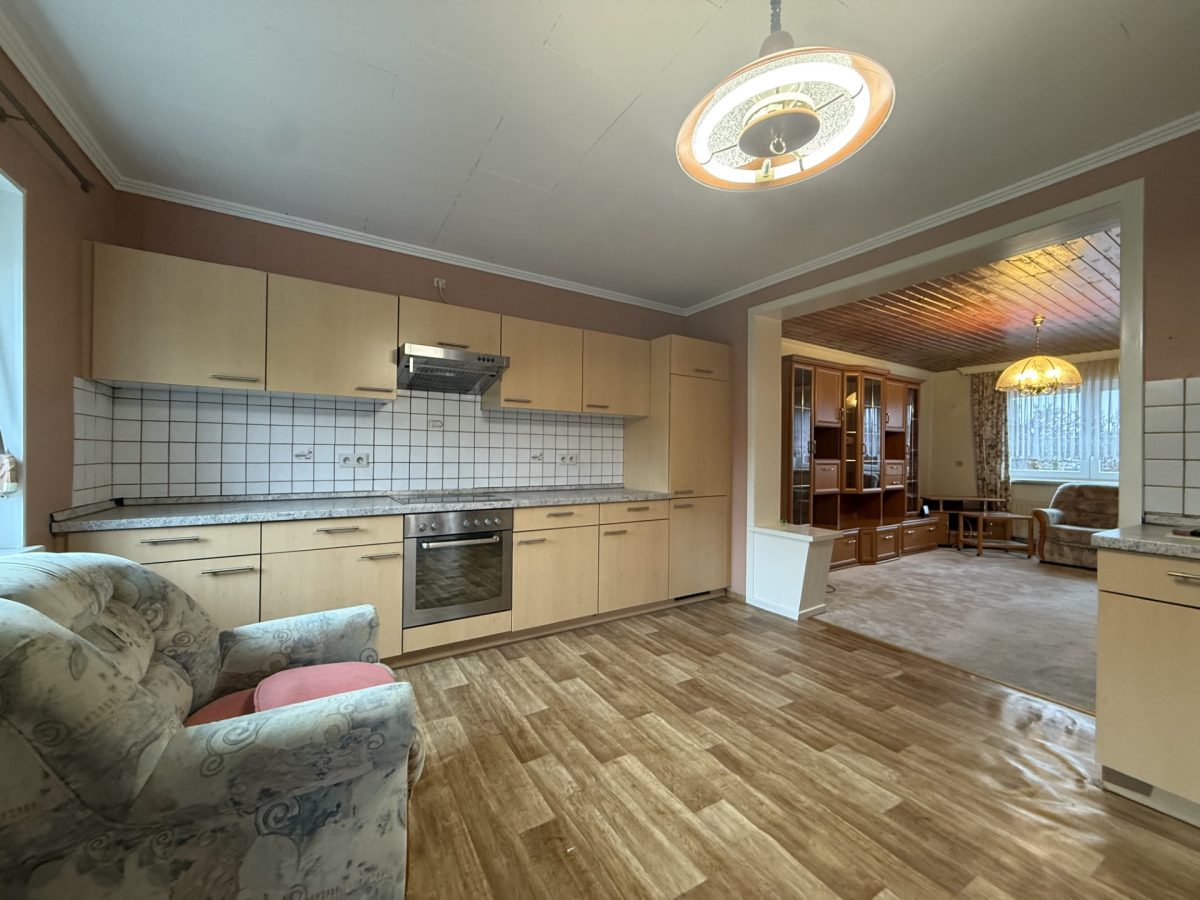 Die Immobilie ist renovierungsbedürftig, bietet jedoch ein attraktives Potenzial zur Umgestaltung.