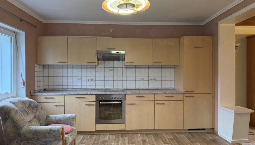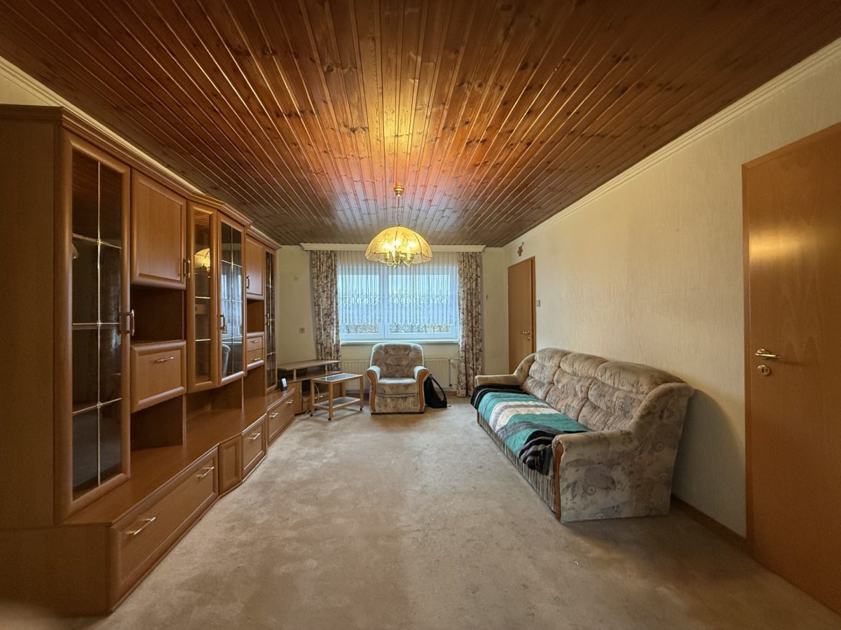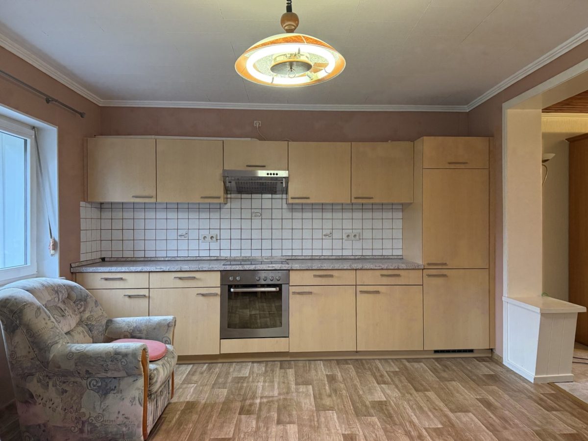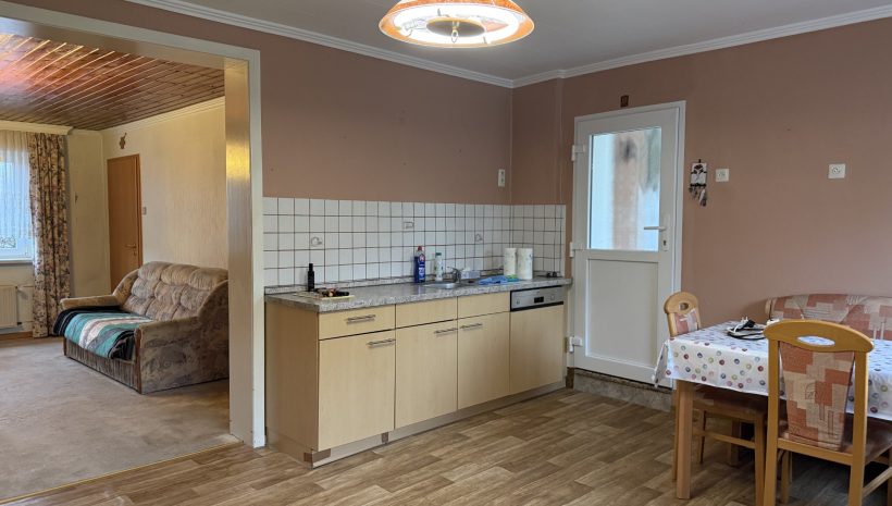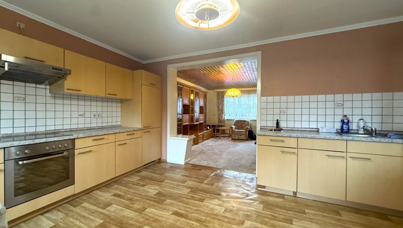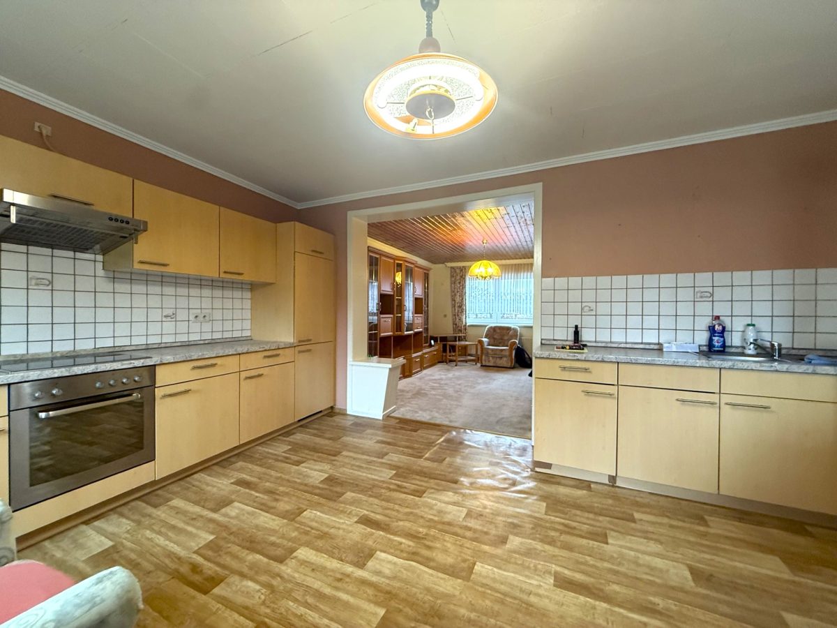 Die Immobilie ist renovierungsbedürftig, bietet jedoch ein attraktives Potenzial zur Umgestaltung.