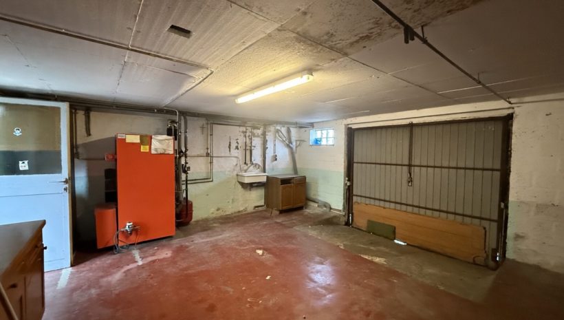 Die geräumige Garage bietet viel Platz und beherbergt eine Gästetoilette, den Ölheizungskessel sowie die Anschlüsse für eine Waschmaschine.