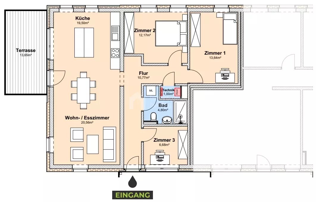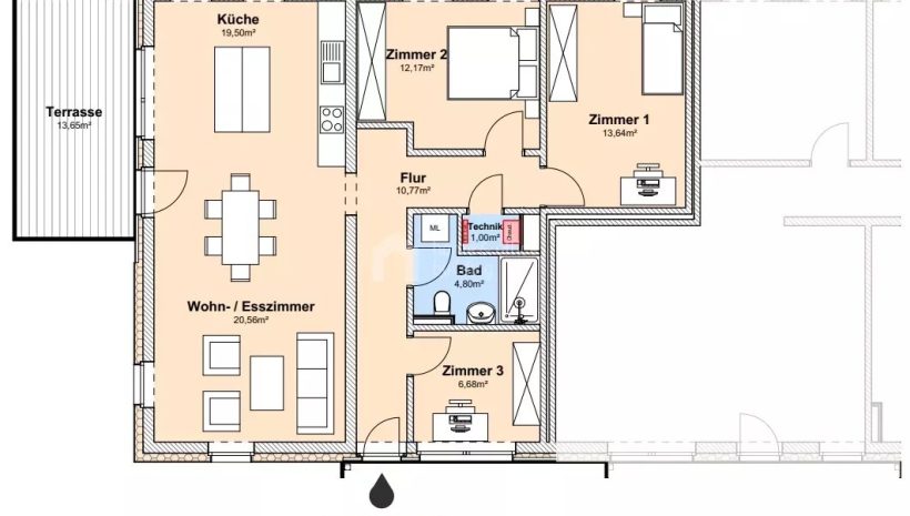 Schlafzimmer: 3 Bäder: 1 Wohnfläche: 89 m² Heizung: Gas Fußbodenheizung Baujahr: 2025