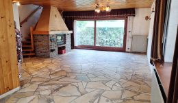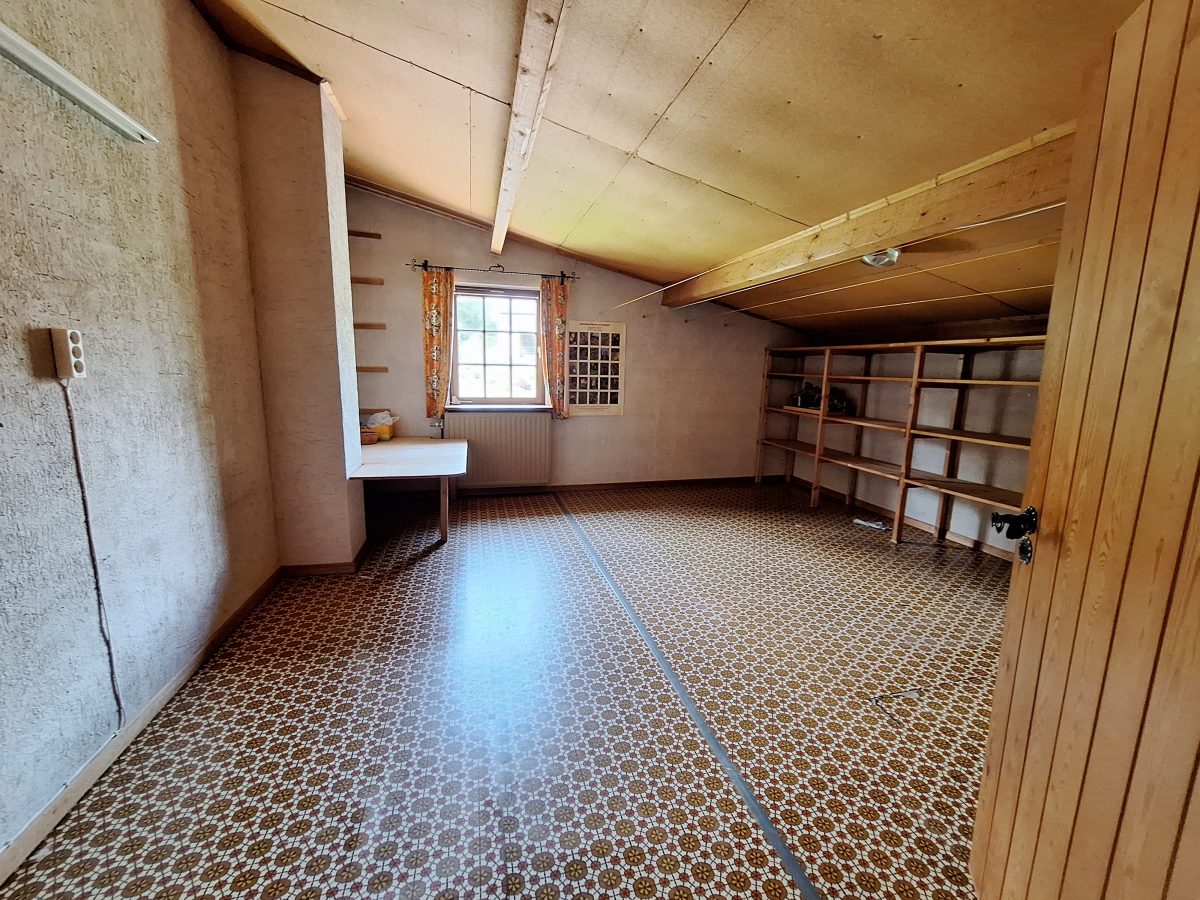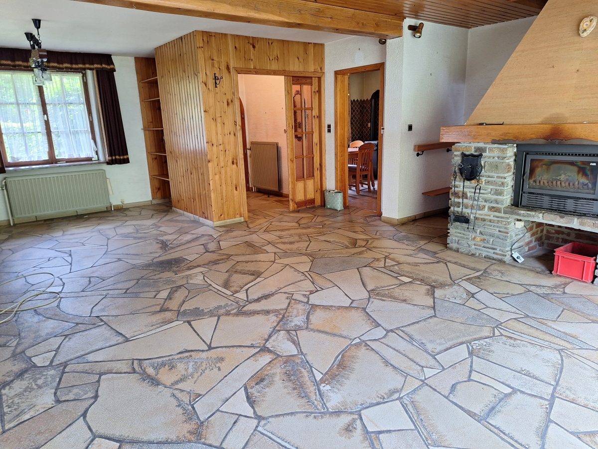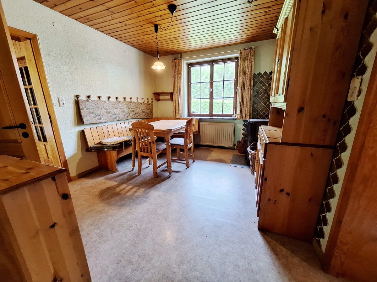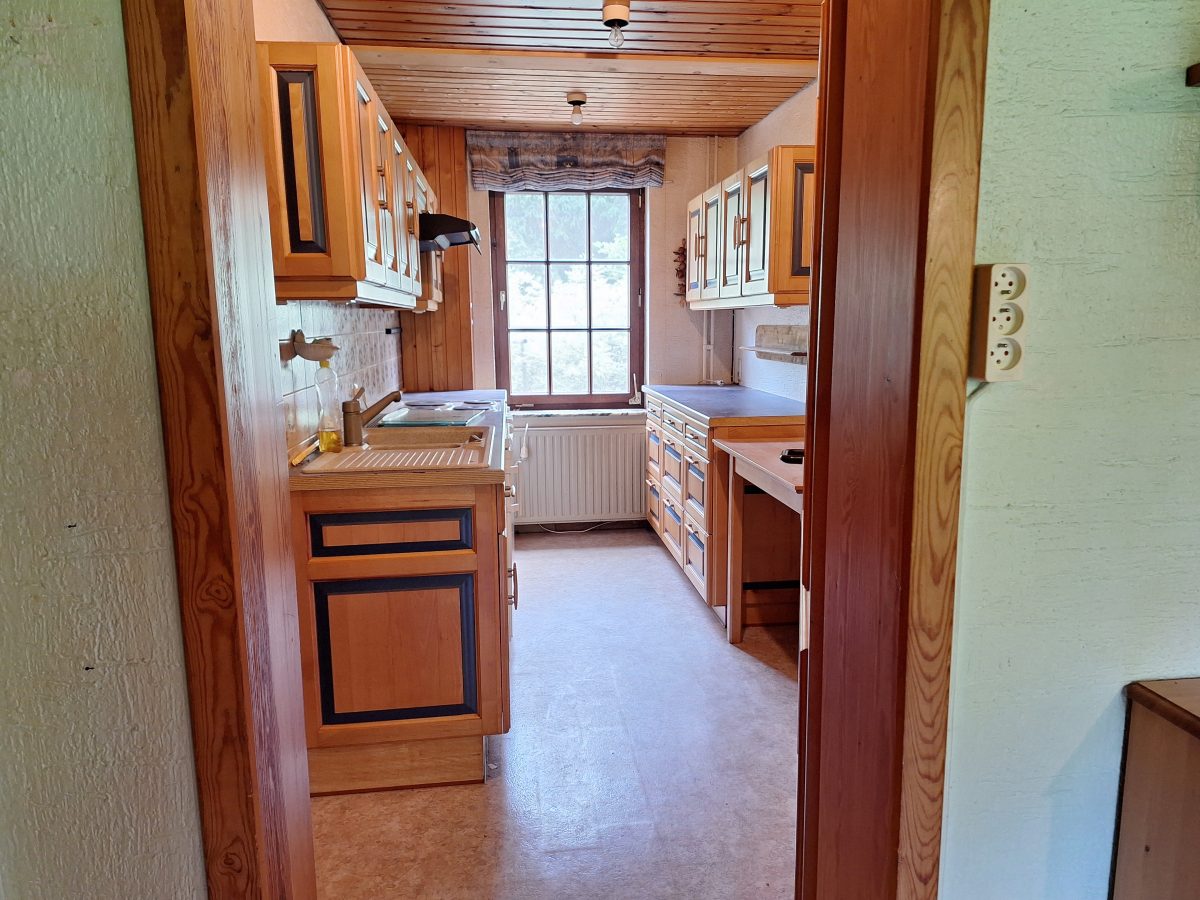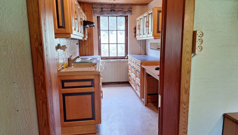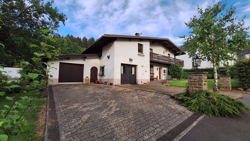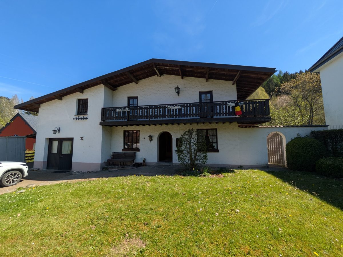Geräumiges und grundsolides Wohnhaus im Chalet-Stil mit verschiedenen Balkonen und gepflegter Gartenanlage zur besten sonnenorientierten Lage ausgerichtet. Es erfordert jedoch einer Renovierung und Modernisierung. EINTEILUNG: Im Erdgeschoss; 2 Garagen, die Eingangshalle mit Garderobe, ein geräumiges helles Wohnzimmer mit offenem Kamin (Kassette) und die Wohnküche, eine Toilette, ein Vorratsraum und die Waschküche. 1. ETAGE: 3 Schlafzimmer, Badezimmer mit WC und noch 2 Räume die als Büro, Schlafz. o.a. dienen könnten. Technische Informationen:  Einzelverglasung und Ölzentralheizung (Heizkessel v 2014). Trotz der nötigen Renovierung besticht die Immobilie mit groszügigem Wohnvolumen, die interessante Lage im malerischen Eifeldörfchen Schönberg, welches zur Grossgemeinde St. Vith gehört mit zahlreichen Einkaufsmöglichkeiten, die Anbindung an die E42 und der Nähe zu Luxemburg. Weitere Informationen erhalten sie via info@immoge.com, Lia Ploumen.