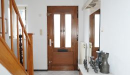 Die Immobilie verfügt über einen hellen Eingangsbereich mit ansprechendem Holztreppenhaus, das die einzelnen Etagen miteinander verbindet, sowie ein separates WC, ein Büro und einen großzügigen Wohnbereich mit offenem Übergang zum Esszimmer und direktem Zugang zur voll ausgestatteten Küche.